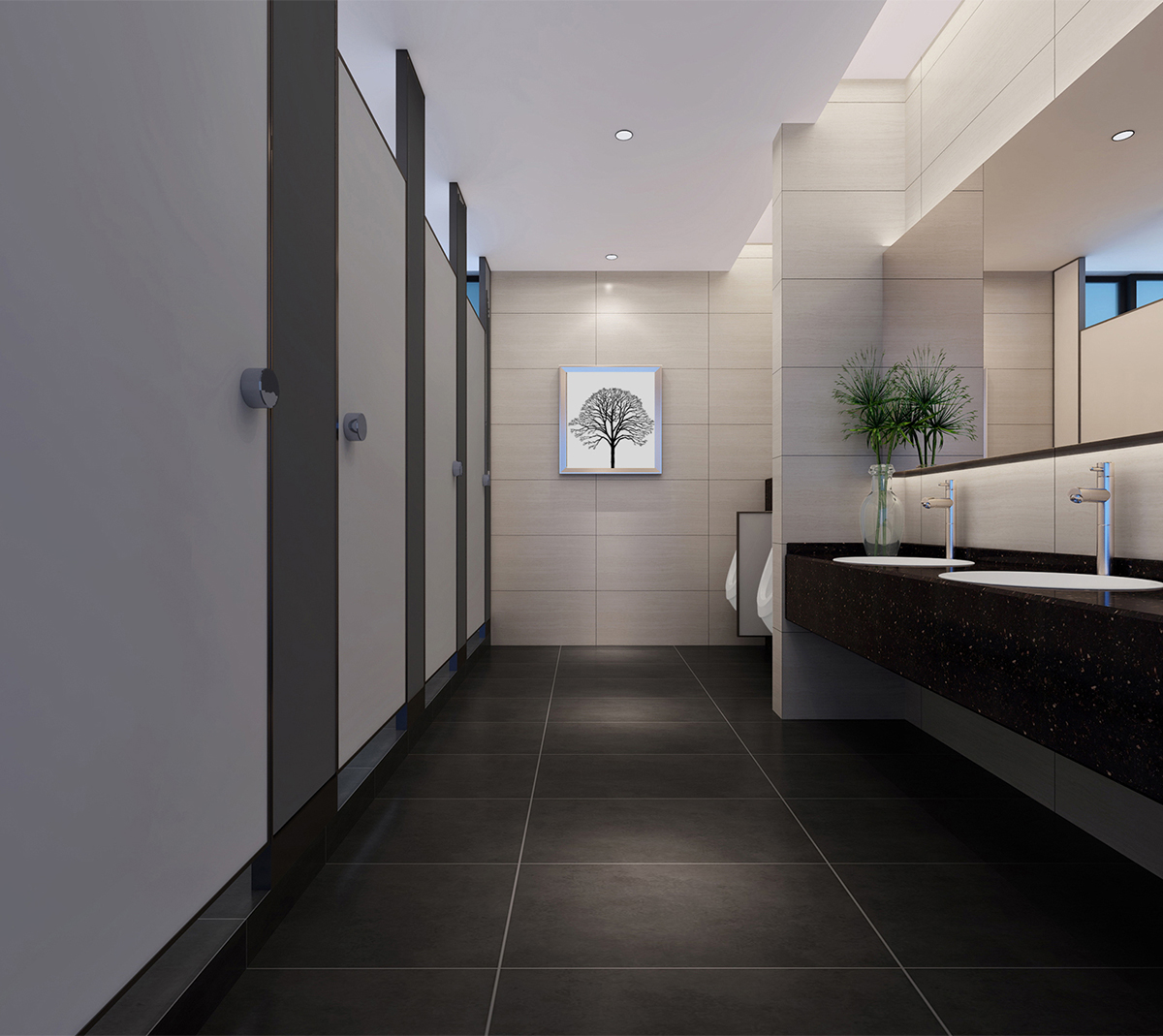 港電電器是一家以生產(chǎn)和銷售小家電制品、電子玩具、快速閃燈、塑膠文具、聽覺保護(hù)器的企業(yè)。本案在設(shè)計(jì)構(gòu)思上采用:時(shí)尚、冷峻、節(jié)能、環(huán)保。材料上彩用:黑鋼、灰色大理石、灰色玻璃。體現(xiàn)主題:環(huán)保空間、突出藝術(shù)形態(tài)、體現(xiàn)企業(yè)個(gè)性。主色調(diào):黑、白、灰,這些都是樸素的顏色,卻能表現(xiàn)出空間高雅、理性和高效。表現(xiàn)形態(tài):樹林,寓意企業(yè)茂盛、團(tuán)結(jié)、強(qiáng)大,給人參差與和諧之美、穩(wěn)定與輕巧之美、節(jié)奏與韻律之美、多樣與統(tǒng)一之美。