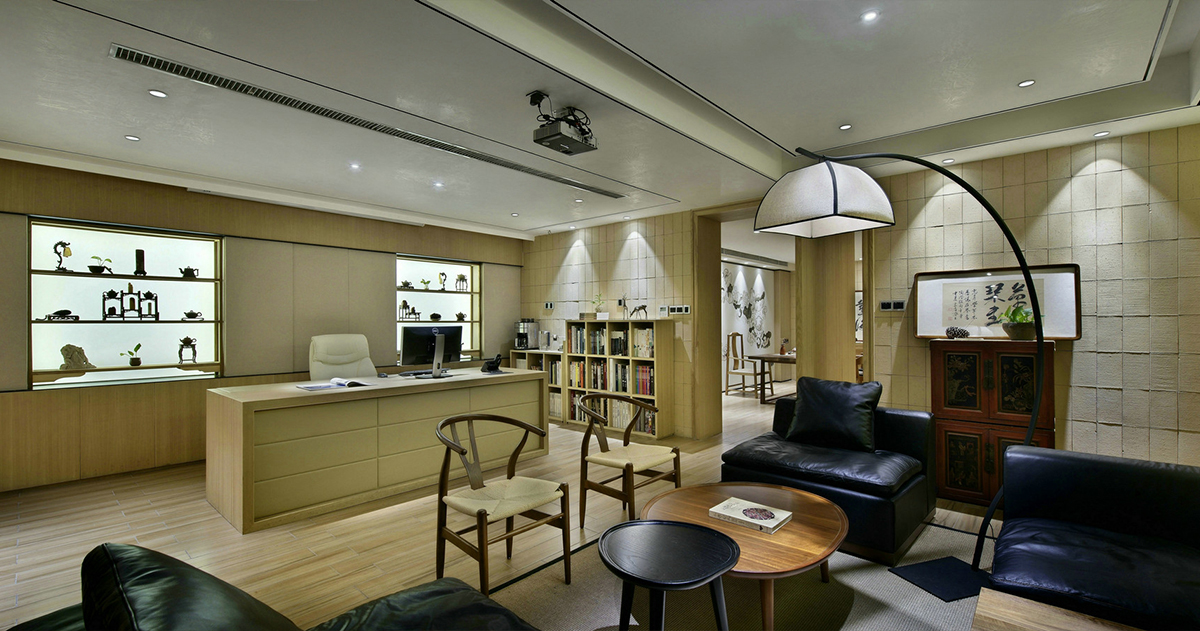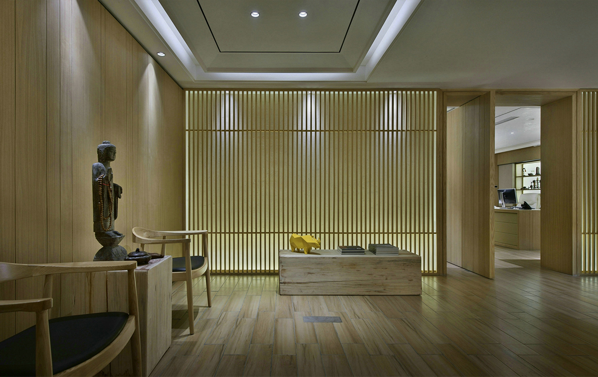 大偉實業是一家經營工藝品配飾的公司,本空間以木為元素,從地面、墻體及屏風都運用了木,巧妙的將其融合到一起。將中國風的“禪”意體現的淋漓盡致,古典與現代的完美結合,創造高品味的現代中式辦公空間。