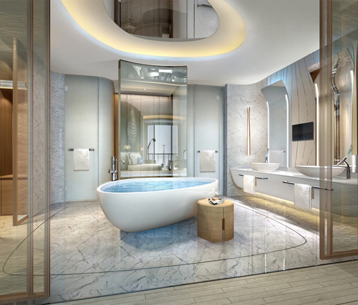 本案設(shè)計天馬行空,行云流水,打破傳統(tǒng)思維,從室外到室內(nèi)融為一體。從設(shè)計到材料的運用都給人極大的震撼力。給人一份與眾不同的張揚和審美情趣的體驗。